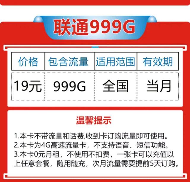 联通19元无限流量卡联通终于“觉悟”!999G通用流量仅19元,网友:终于良心了!